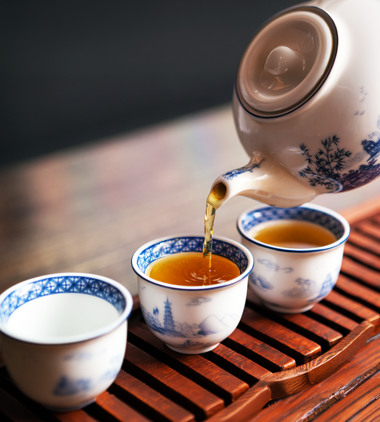 - 蓋碗の蓋をずらし、温まった茶杯に注いでお召し上がりください。急須をお使いの場合はそのまま茶杯に注いでお召し上がりください。